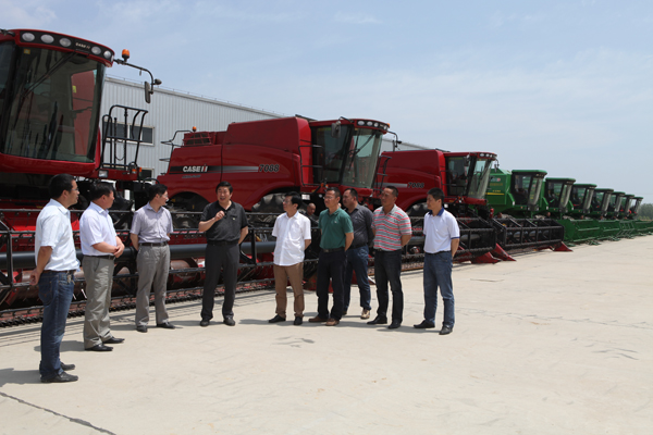 胡兆辉一行先后参观了三麦收割现场、国有农机总站、水稻栽插现场以及仓储中心。