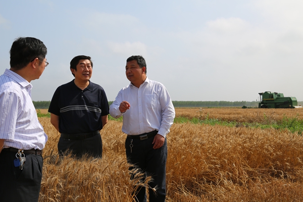 6月7日,m88asia股份公司总裁胡兆辉一行到宝应湖检查指导三夏工作,宝应湖农场党委书记魏军民、副总经理夏永龙陪同检查。