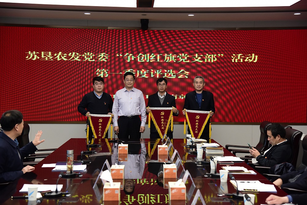 会上,各子公司、公司总部各党支部书记分别进行了述职。在现场投票环节,经过2轮激烈的票决,最终大华种业机关党支部、苏垦米业总部党支部和总部第一党支部票数略胜一筹,被评为一季度“红旗党支部”。王立新为三个党支部授旗。
