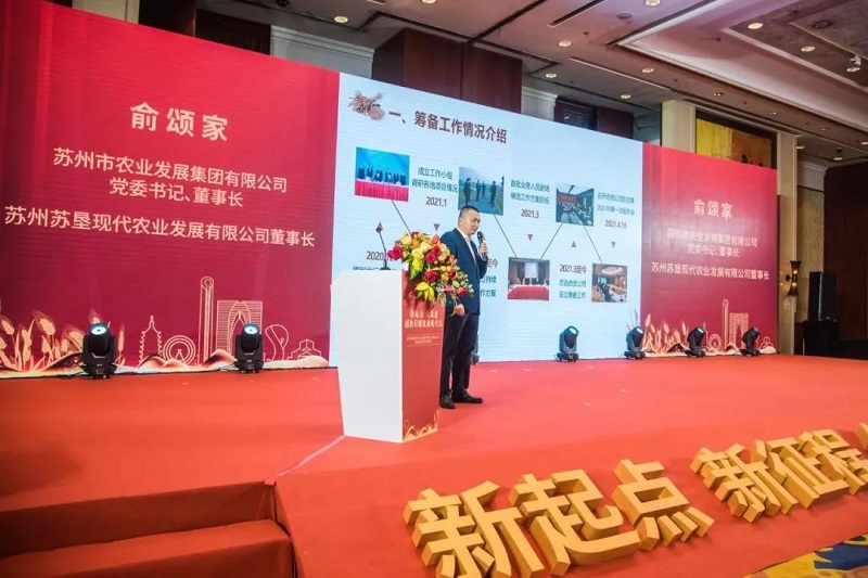 苏州农发集团董事长、苏州苏垦董事长俞颂家作新公司筹建情况的汇报,从公司筹备工作情况、公司概况和服务内容、发展目标和未来展望等方面详细介绍了新公司的情况。