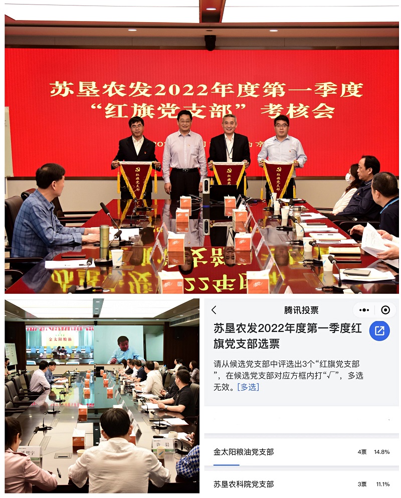 会议以视频形式召开,主会场设在南京苏垦大厦,苏州苏垦、金太阳党支部各设置了1个分会场,9位党支部书记分别就一季度支部工作开展情况进行了述职。本次会议在民主互评环节创新了投票形式,采用腾讯投票小程序进行线上匿名投票,投票结果实时投屏在主会场大屏幕,全过程公开透明。经过了激烈的两轮角逐之后,综合评选出苏垦米业总部党支部、总部第一党支部、大华种业机关党支部为第一季度“红旗党支部”。王立新为红旗党支部授旗。