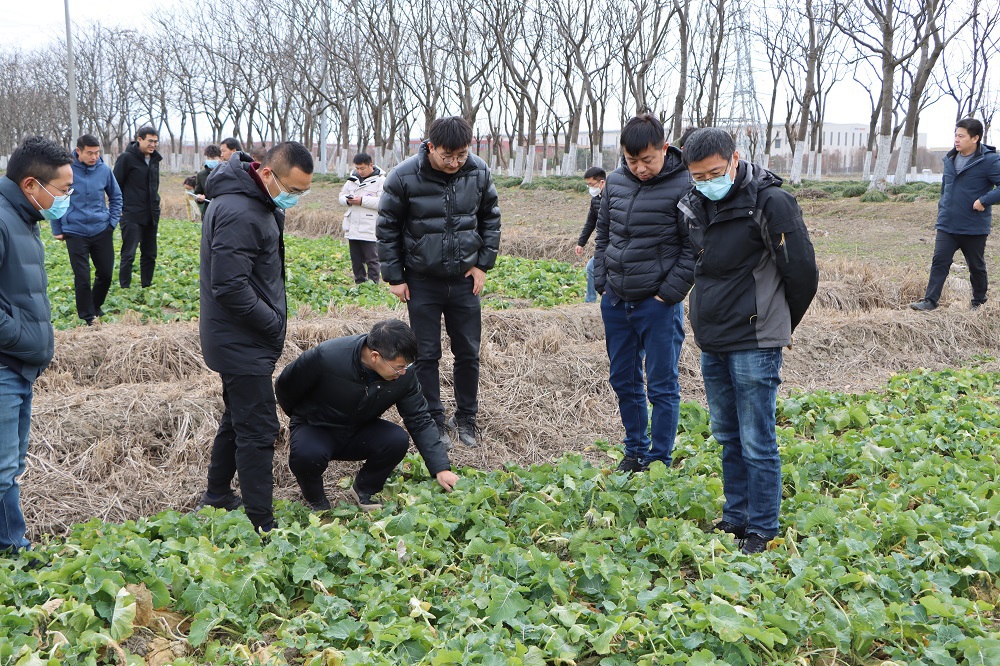 1月10日-11日,苏州苏垦总经理丁荣根带领各生产基地负责人深入田间,开展小麦、油菜苗情调查并召开现场技术交流会。本次技术交流会邀请m88asia种植业管理中心总经理助理秦建华和业务经理葛猛到现场进行技术指导。