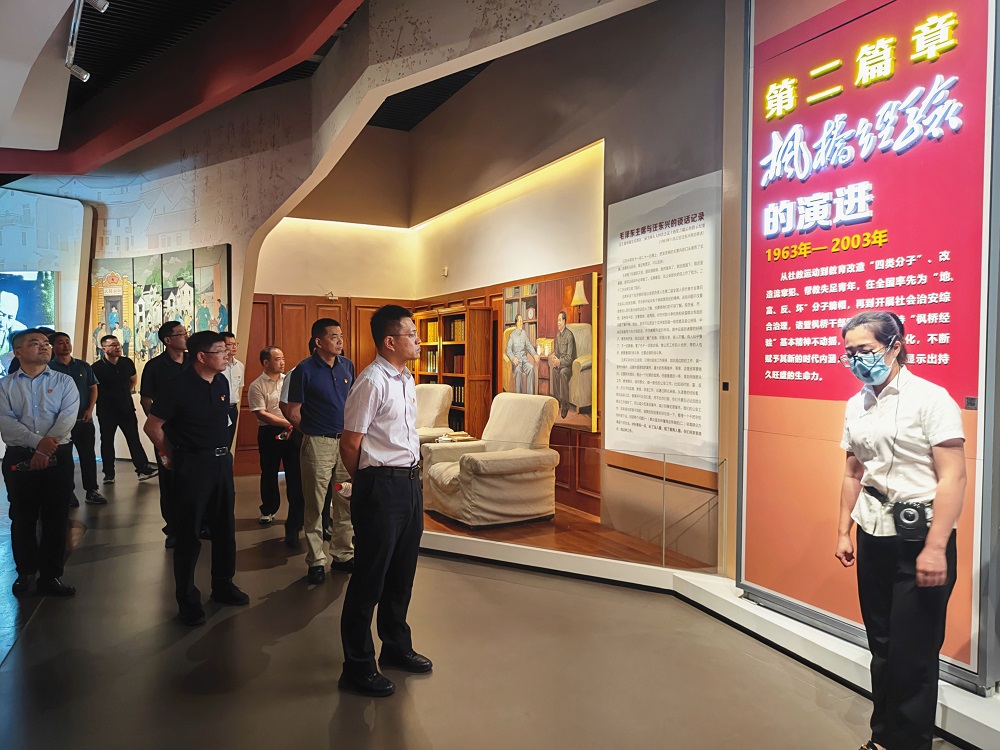 在诸暨市枫桥镇,通过参观枫桥经验陈列馆、聆听枫桥经验创始人的嫡系传承人的精彩讲解,全体人员进一步了解了“枫桥经验”的历史溯源和枫源村、杜黄新村等村集体的创新实践,深刻领会了新时代“枫桥经验”“矛盾不上交、平安不出事、服务不缺位”的理念。