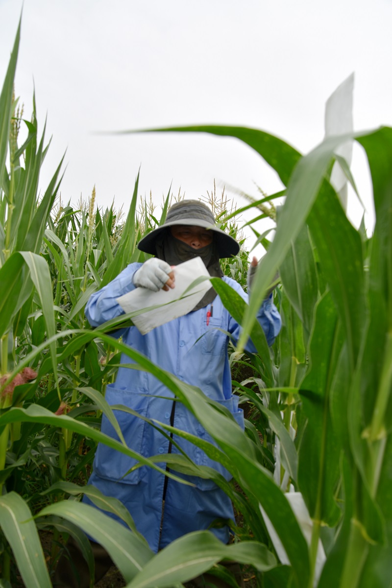玉米授粉是培育良种至关重要的环节,授粉最关键的时期正是盛夏三伏天,地里温度高达40℃以上,然而花粉存活时长仅6个小时,人工授粉正赶上一天中最闷热的时段,他每天要连续给玉米套袋、授粉、挂牌8到9个小时,团队每天套袋近3000个,汗水湿透衣服,太阳晒黑脸皮,腰弯得都直不起来,皮肤也被玉米叶划出一道道血口子,花粉落到脸上、脖颈、身上,汗水一浸,又疼又痒。
