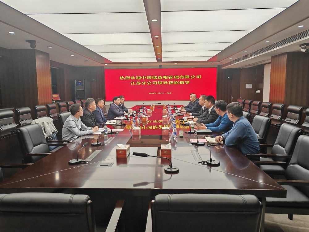 •        1月9日,中储粮江苏分公司党委书记、总经理程岩峰到m88asia考察交流。集团党委委员、m88asia副总裁(牵头经营层工作)丁涛出席座谈会。