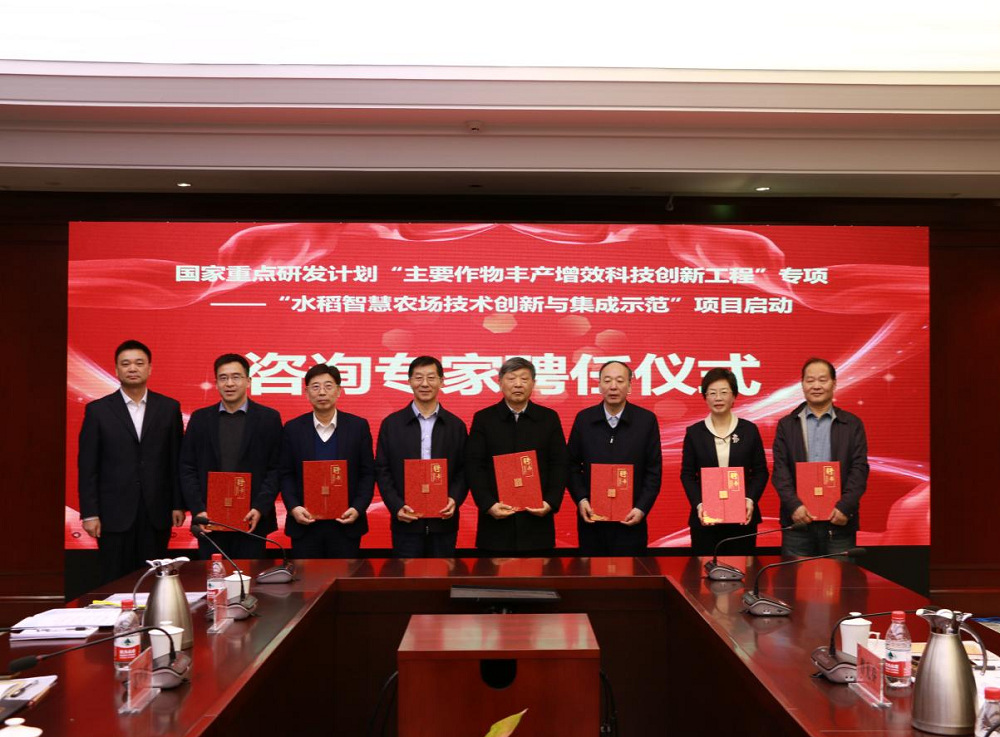 3月20日,由m88asia牵头,南京农业大学、扬州大学、中国农业科学院、东北农业大学、北京市农林科学院、农业农村部南京农业机械化研究所、上海联适导航等单位共同承担的“十四五”国家重点研发计划“主要作物丰产增效科技创新工程”重点专项“水稻智慧农场技术创新与集成示范”项目(2023YFD2300500 )启动会在南京顺利召开。