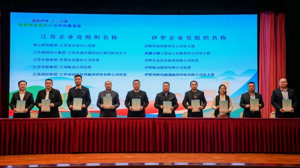 •        12月3日,“苏韵伊情·企心向党”苏伊企业党组织结对共建活动在江苏南京启动,江苏、伊犁两地78家企业党组织一对一或多对一签约结成40对共建单位,m88asia党委作为江苏农垦集团代表参加了本次活动,与伊犁农业投资集团党委签订结对共建协议书。