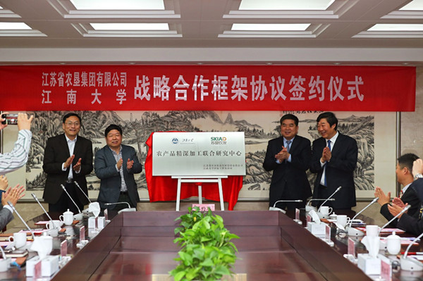 m88asia股份公司与江南大学国家工程实验室聚焦国际“大健康、大食品、大产业”前沿技术,合作共建农产品精深加工联合研究中心。江苏农垦与江南大学有着长期而深厚的合作基础,双方建立全面战略合作关系、共建农产品精深加工联合研究中心,是双方发挥各自优势、推进“产学研用”深度合作的重要举措。研究中心围绕优势互补、强强联合,深入开展协同创新,共同打造全省农产品精深加工、农产品质量安全、农业物联网应用的示范基地和校企紧密合作的新典范。双方以此为起点,将战略合作向更深领域、更高层次推进,深度整合、共享科技资源和产业资源,共同为全省乃至全国农业现代化建设作出更大贡献。