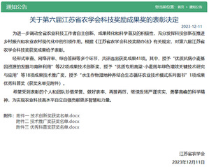 喜讯+!m88asia2项成果获江苏省农学会科技奖励成果奖、1人获科技奖励人才奖