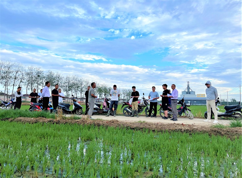 为进一步强化水稻栽后生产管理,7月1日,东坝头开展水稻生产管理工作大检查。分公司副总经理、工会主席浦东同志及相关农业生产管理人员参加。此次生产检查重点针对水稻整地质量、栽播质量、栽后补秧、肥料运筹、返青长势、水层管理和杂草化除,面源环境整治等工作。检查小组对东坝头在田水稻进行了全面检查,参与检查人员深入田间地头查看水稻长势、询问田间管理等情况。检查结束后,东坝头立即召开了水稻生产检查交流会,所有参加检查的人员就检查田块的品种、播期、施肥、化除等基本生产情况进行了评价交流,认真听取在场人员提出的相关建议。最后,浦东同志根据农发总部种植业管理中心《2022年水稻栽后管理生产检查情况通报》文件精神,结合当前检查的实际情况进行分析评价,并提出相关要求:一是抓好水层管理,促进浅水处分蘖;二是加快施肥节奏,减轻田间杂草防除压力;三是继续跟进查苗补缺工作,为东坝头水稻超高产打下坚实基础;四是坚持“药肥双减”,严格按照《东坝头农情》麦稻操作规程用药,确保稻米质量安全;五是农业中心要加强病虫草害预测预报,科学制定防治策略,提高综合防治效果。